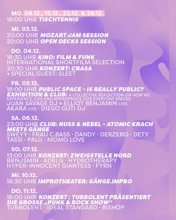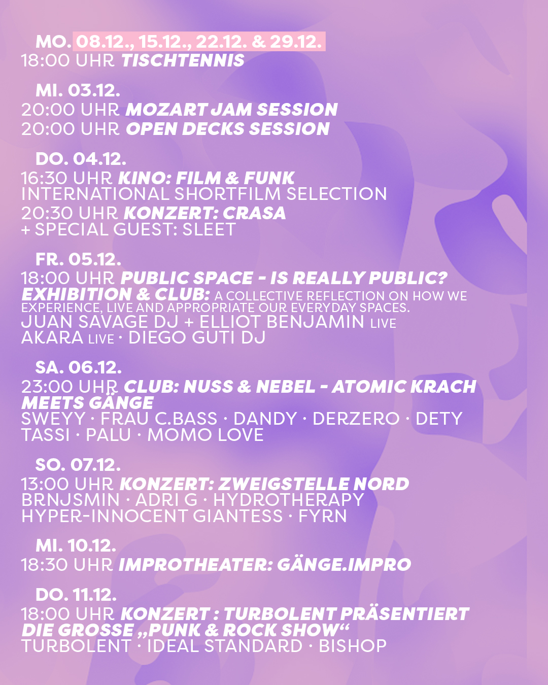 Mo. 08.12., 15.12., 22.12. & 29.12.