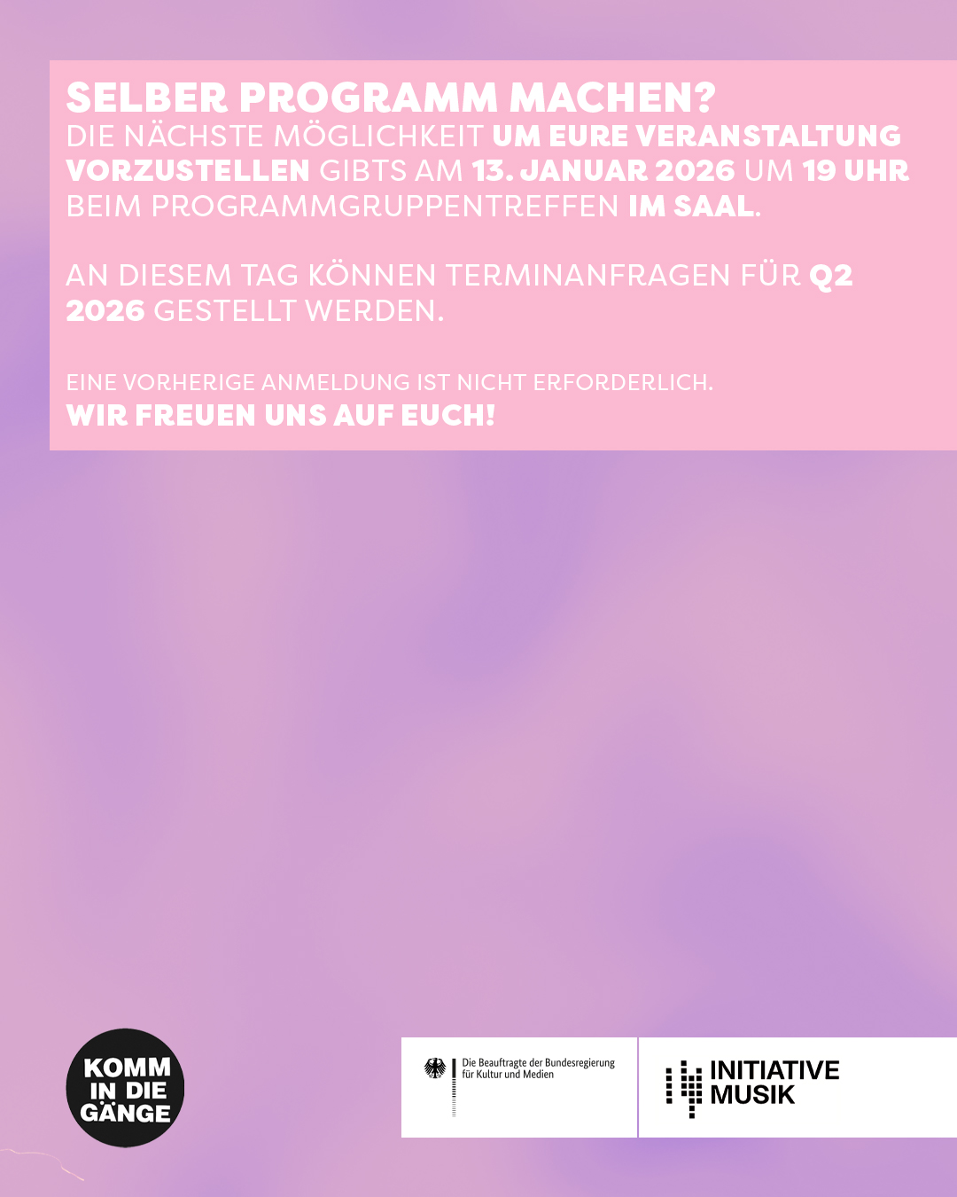 Besser spät als nie! Das komplette Monatsprogramm für die Fabrique (bzw. den Saal) im Gängeviertel.