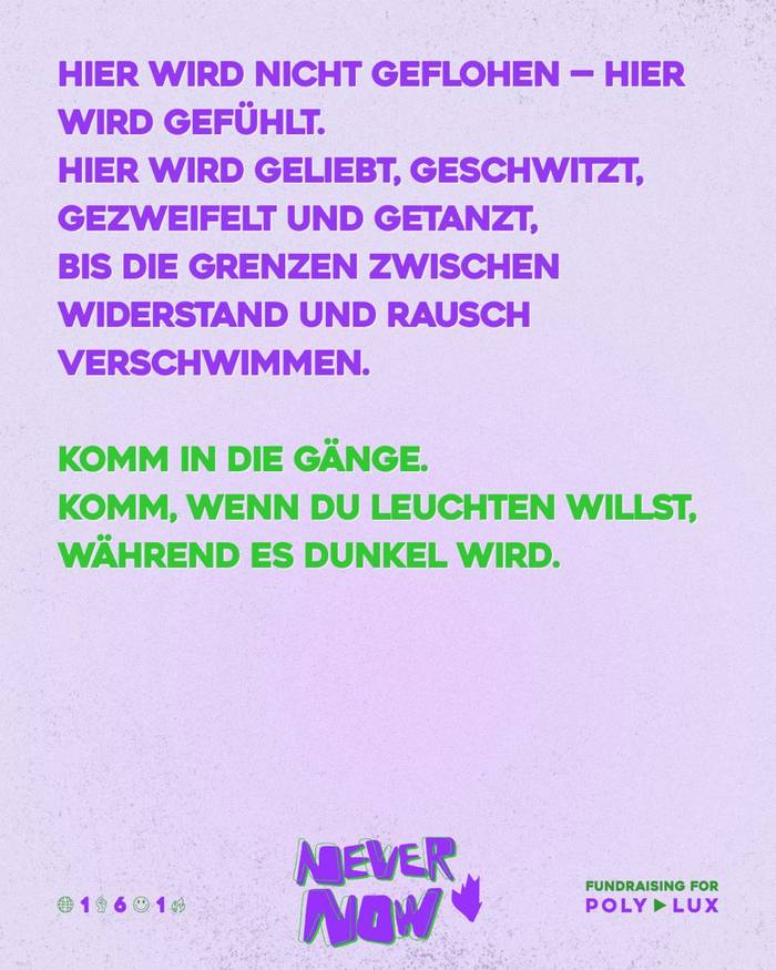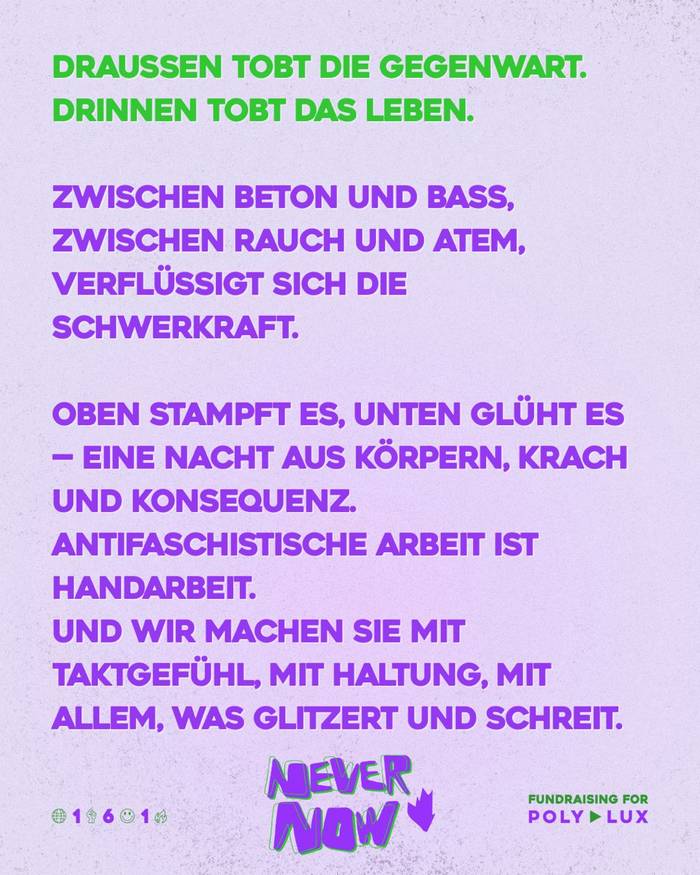 Soli-Party mit Spendenziel Polylux e.V. // Never silent. Never passive. NEVER//NOW.