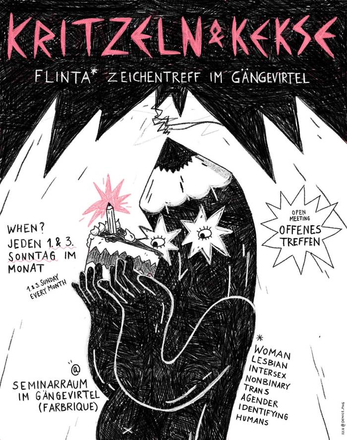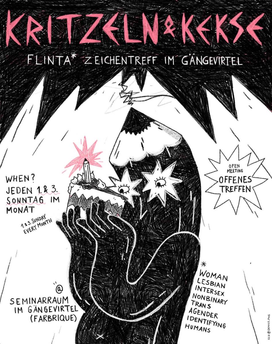 Kritzeln und Kekse (Doodling & Cookies former Comics&Cake) is the FLINTA* comic-drawing-meeting in Gängeviertel (for german se