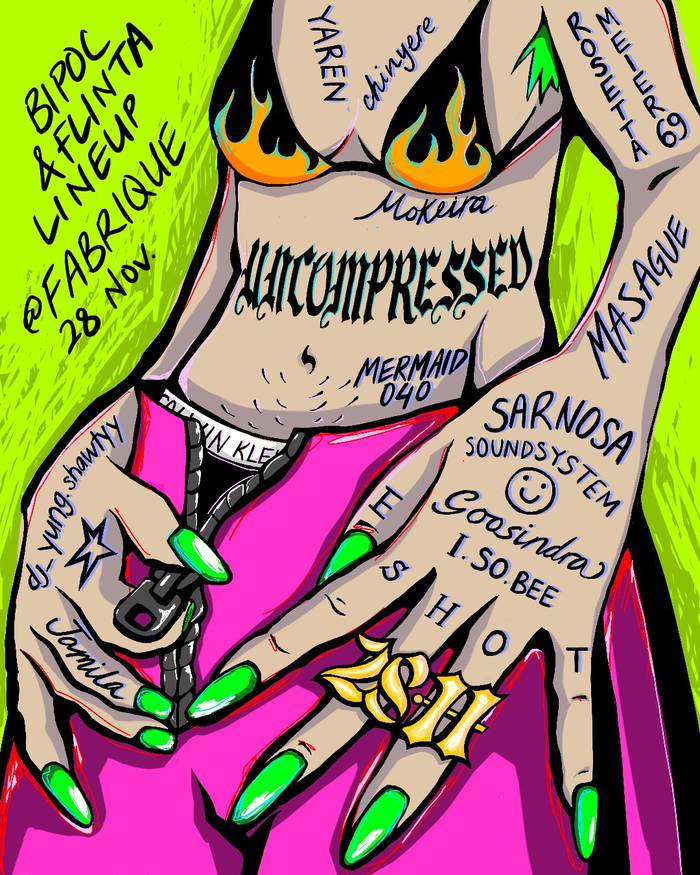 As the name  suggests UNCOMPRESSED stands for raw, unfiltered & liberating energy  that we want to bring behind decks & also on dancefloors for people  who were always told to shrink themselves for the comfort of the  oppressing status quo. Our members have experiences & engagement in  other counter-culture scenes as graffiti, ballroom, decolonial &  queer feminist movements.