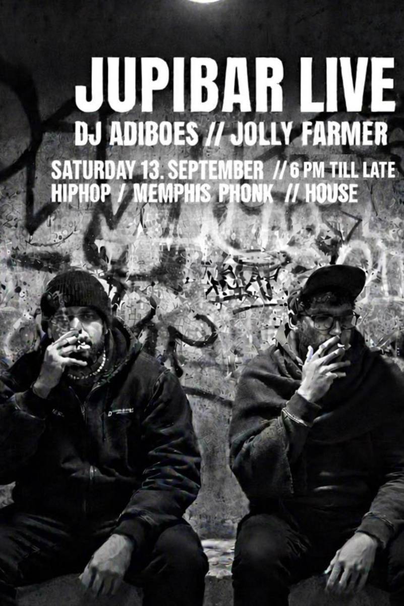 Es ist wieder soweit. Heute Abend gibt es Mukke auf die Ohren von unseren DJs ADIBOES (HipHop/Memphis Phonk) und unserem Housemeister JOLLY FARMER (House).
