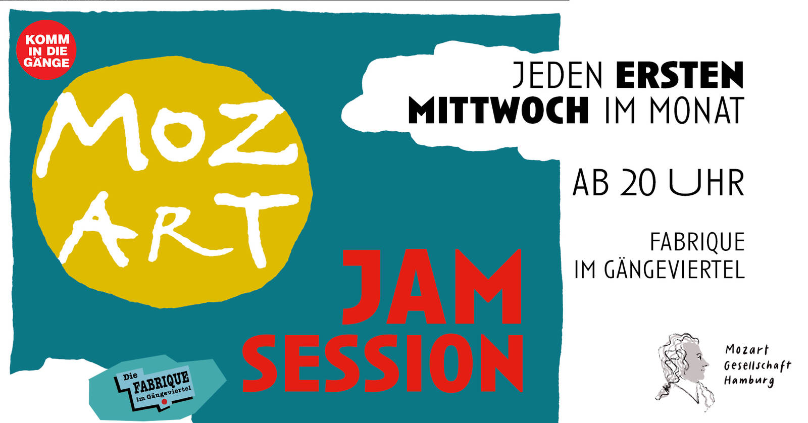 Alles ist möglich bei der Mozart Jam Session in der Atmosphäre der legendären Fabrique im Hamburger Gängeviertel. Einfach Instrumente mitbringen oder sich vor Ort welche schnappen und loslegen-die ganze Nacht lang, ohne Nachbarn, die irgendwann an die Decke klopfen! Instrumente und Noten sind genug vorhanden, was und wie gespielt wird, entscheiden wir spontan – Jam Session eben.