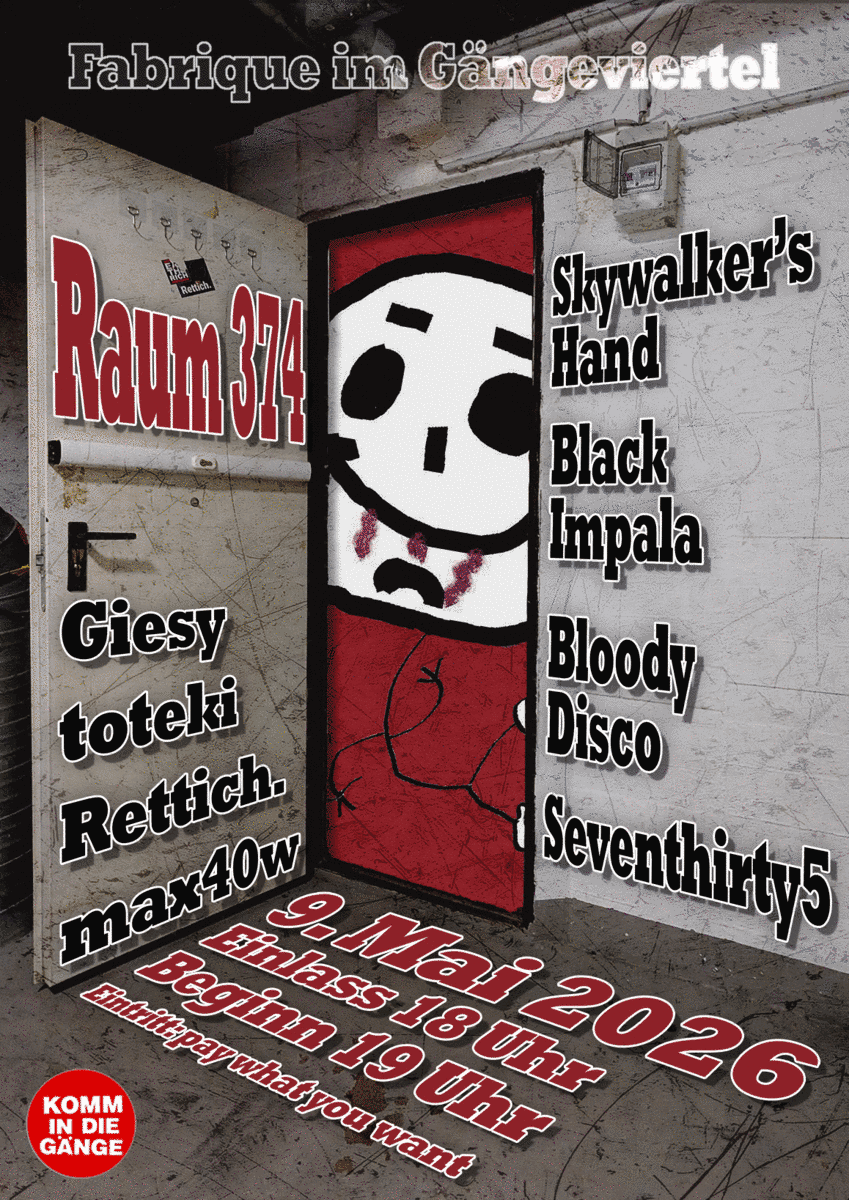 Der Proberaum existiert schon seit vielen Jahren und es ist mehr als überfällig, dass die entstandene Musik dort drin das Licht der Welt erblickt! Die in dem Raum ansässigen Bands/DJ's und deren Freunde, möchten mit Euch einen richtig geilen Abend voller Musik, Spaß, Tanz, Euphorie und Eskalation erleben!